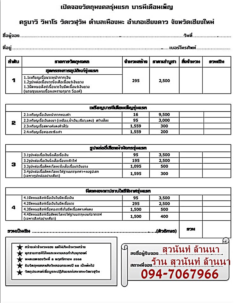 จองได้ค่ะ วัตถุมงคลรุ่นแรก บารมีเดือนเพ็ญ หลวงปู่ครูบาวิ วิมาโร วัดเวฬุวัน เมืองนะ จ เชียงใหม่