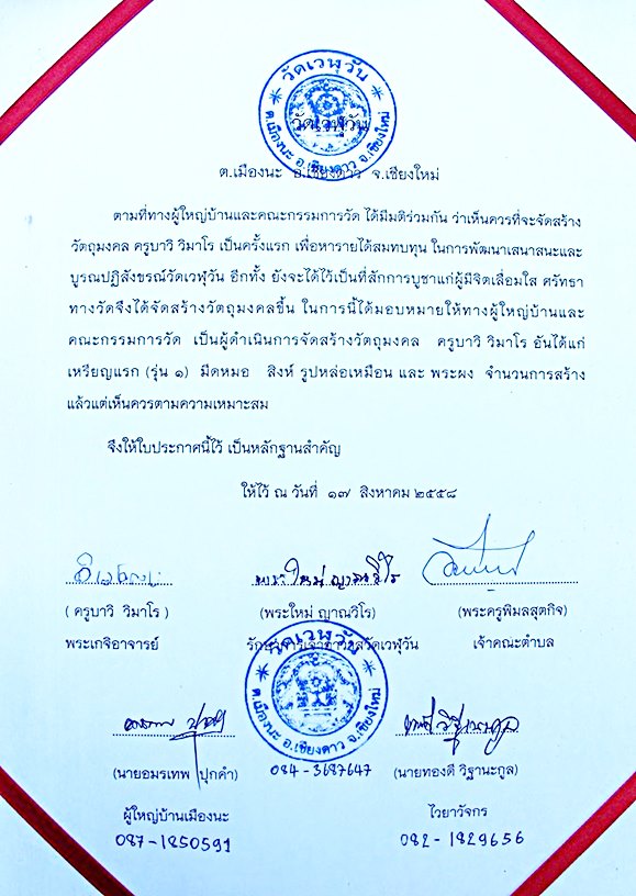 #รายการวัตถุมงคลรุ่นแรก ครูบาวิ วิมาโร วัดเวฬุวัน