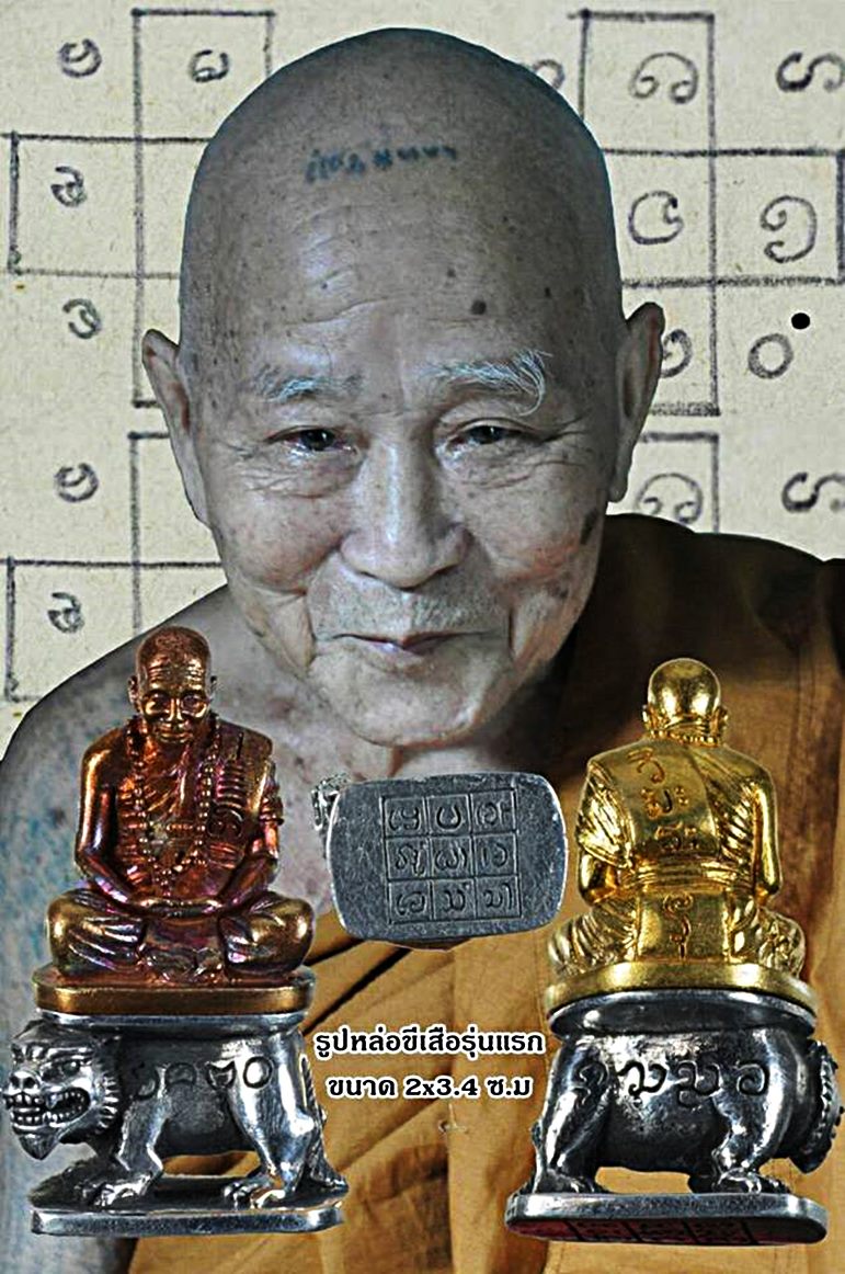 3.2 รูปหล่อเนื้อเงิน นั่งเสือเนื้อนวะผิวไฟ สร้าง195 องค์ จอง 2500 บาท