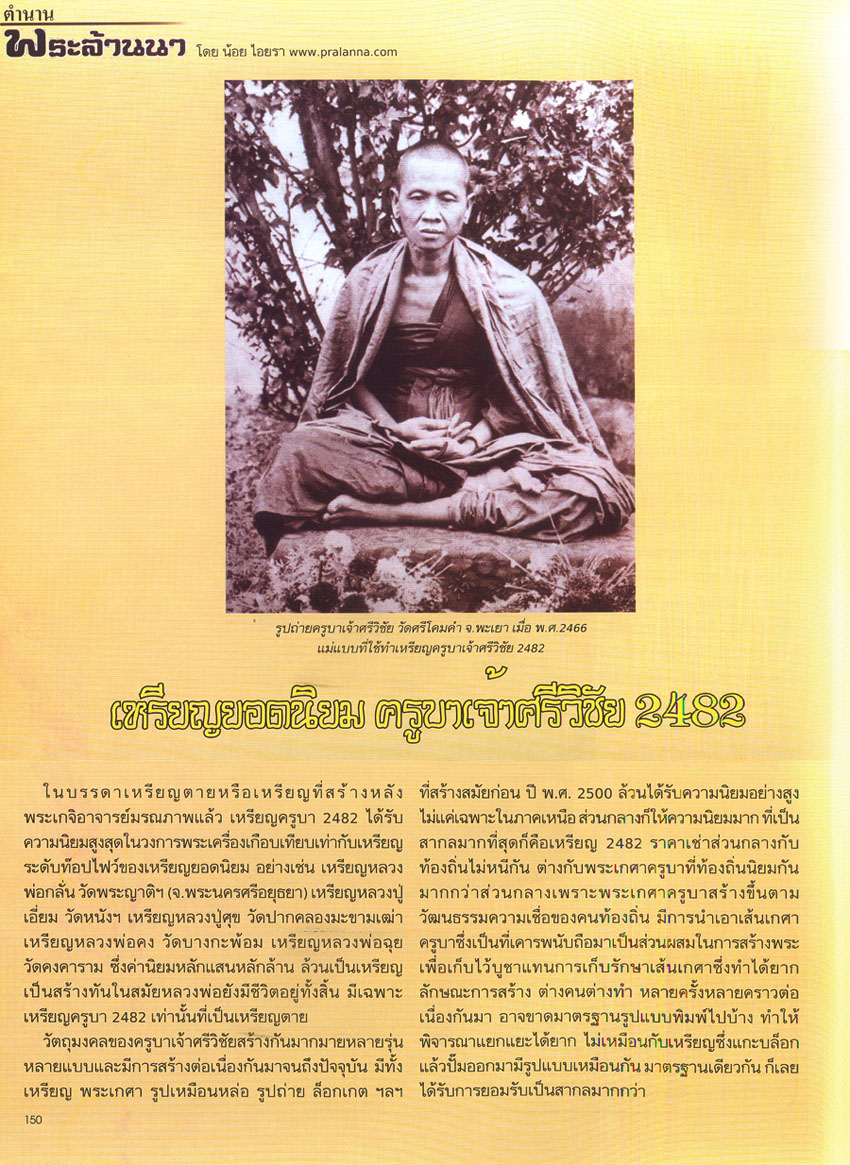ตำนานพระล้านนา.." เหรียญครูบาเจ้าศรีวิชัย 2482 "..หนังสือ SPIRIT..ฉบับที่ 53 เดือนเมษายน 2553